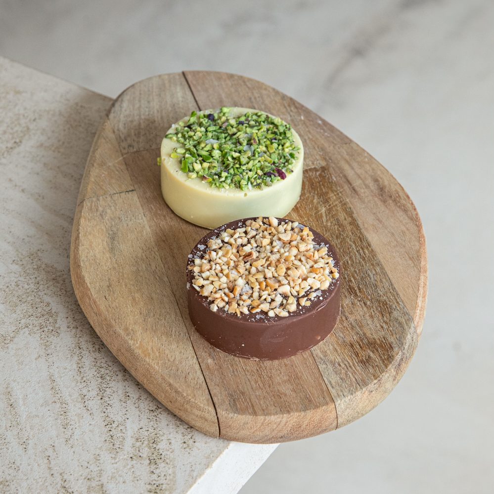 Discover the perfect duo with our Gianduia & Pistacchio Tortini, each offering a unique taste experience. The Gianduia Tortino combines the rich creaminess of milk chocolate with the satisfying crunch of whole hazelnuts, delivering a timeless classic that’s both indulgent and comforting. The Pistacchio Tortino, on the other hand, blends the delicate sweetness of white chocolate with the earthy richness of pistachios, creating a smooth and luxurious treat.